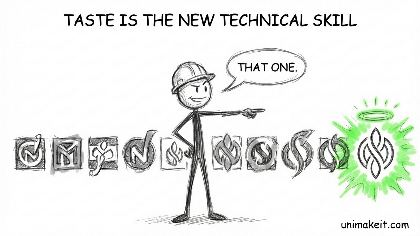 Your value to your “client” is no longer your ability to grind out output. It is your ability to look at 50 AI-generated options and say, “That one. That is the one that won’t get us sued. Ship it.”