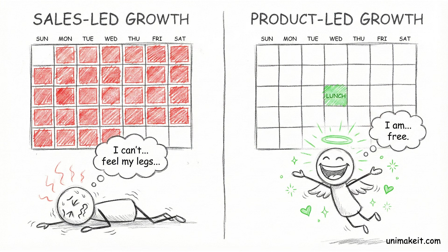 This is not a metaphor. He was the CEO of a B2B seafood marketplace, and he was literally the guy driving a beat-up Ford F-150 to restaurants.