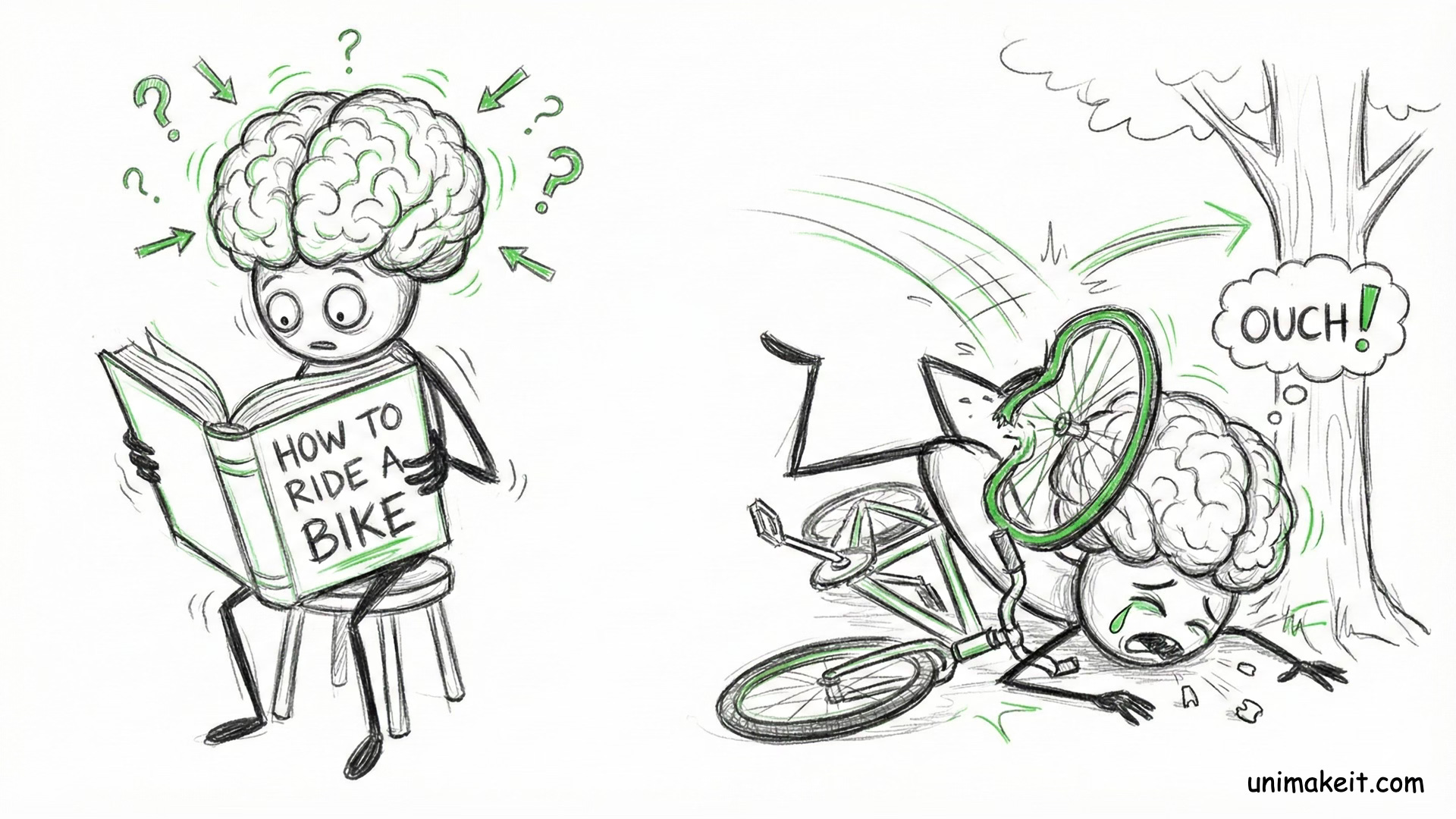 But if you pick up a racquet and swing once? Even if you miss? That single second of failure contains more data than the 10 hours of watching.