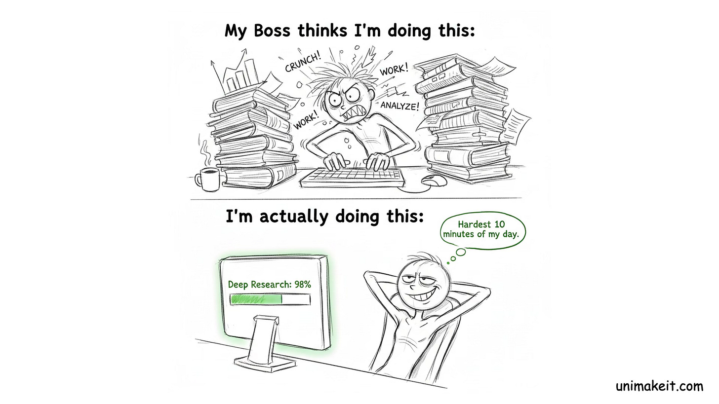 Today, we are stopping the chatting and starting the working by deploying an autonomous agent designed to save you from the “17-tab research spiral” I inevitably fall into at 2 AM. Instead of manual “doc-hopping,” we are using a tool that browses the web, reads dozens of pages, and delivers an in-depth, fully cited report in about 10 minutes, effectively replacing thousands of dollars in outsourced research with a single click.