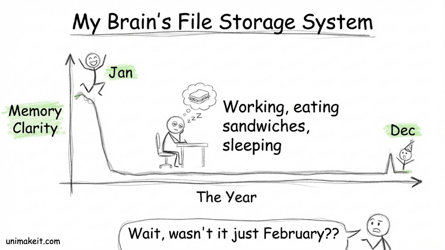 Psychologists say our adult lives become a blur of repetition. My brain looks at my daily routine—Wake, Coffee, Work, Scroll, Sleep—and simply yells, “DUPLICATE FILE! DELETE!” to save storage space.