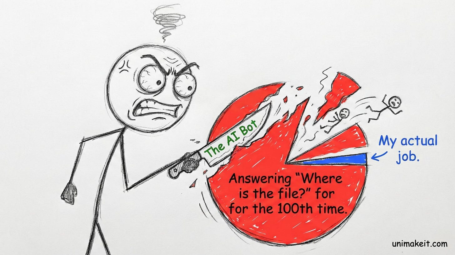 The modern workplace is a fractal nightmare of people asking, “Where is the quarterly report?” or “What’s the Wi-Fi password?”