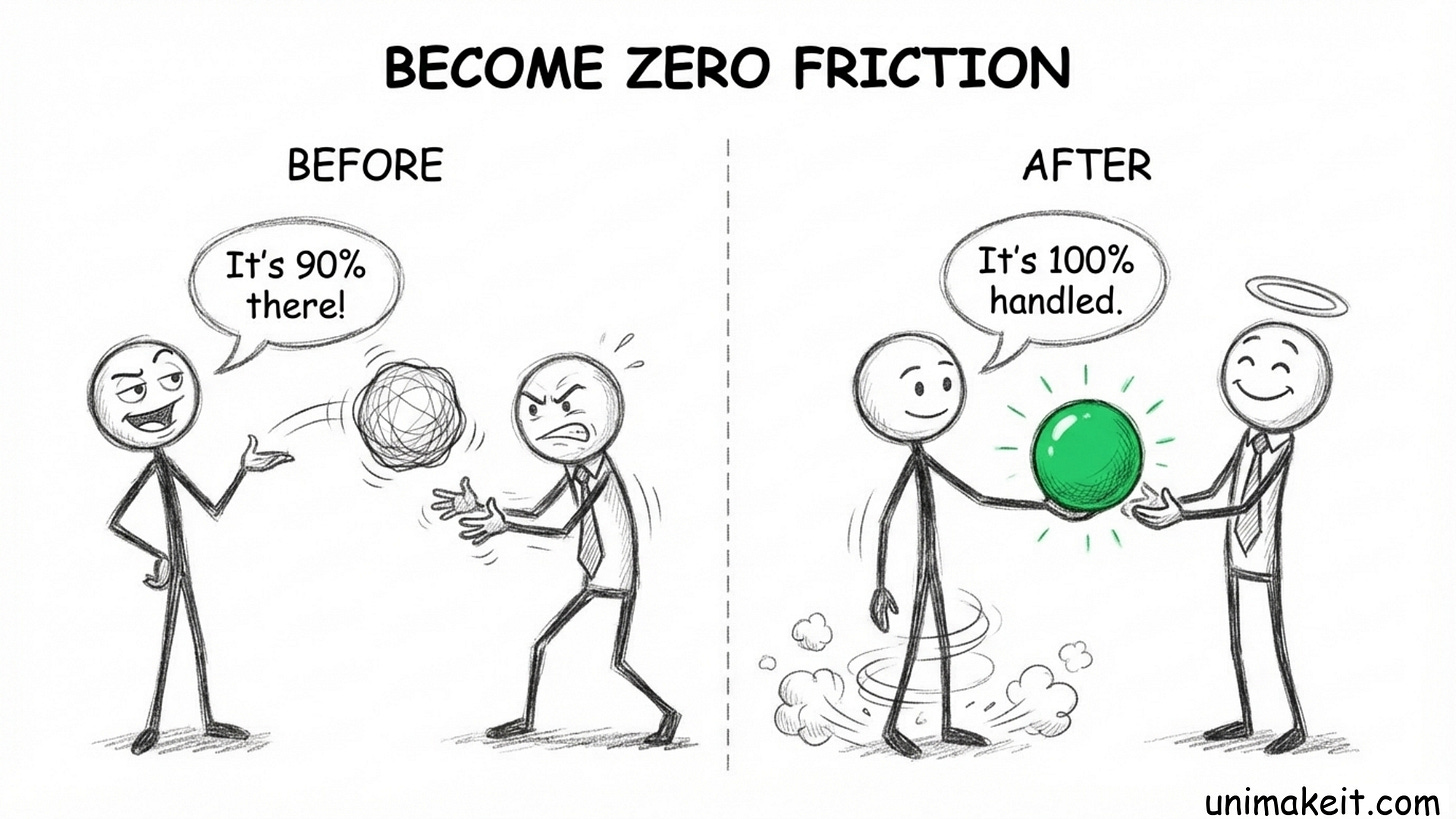 If you turn in work that is 90% there, you are creating a “management debt” for your client. They have to check it. They have to fix that last 10%.