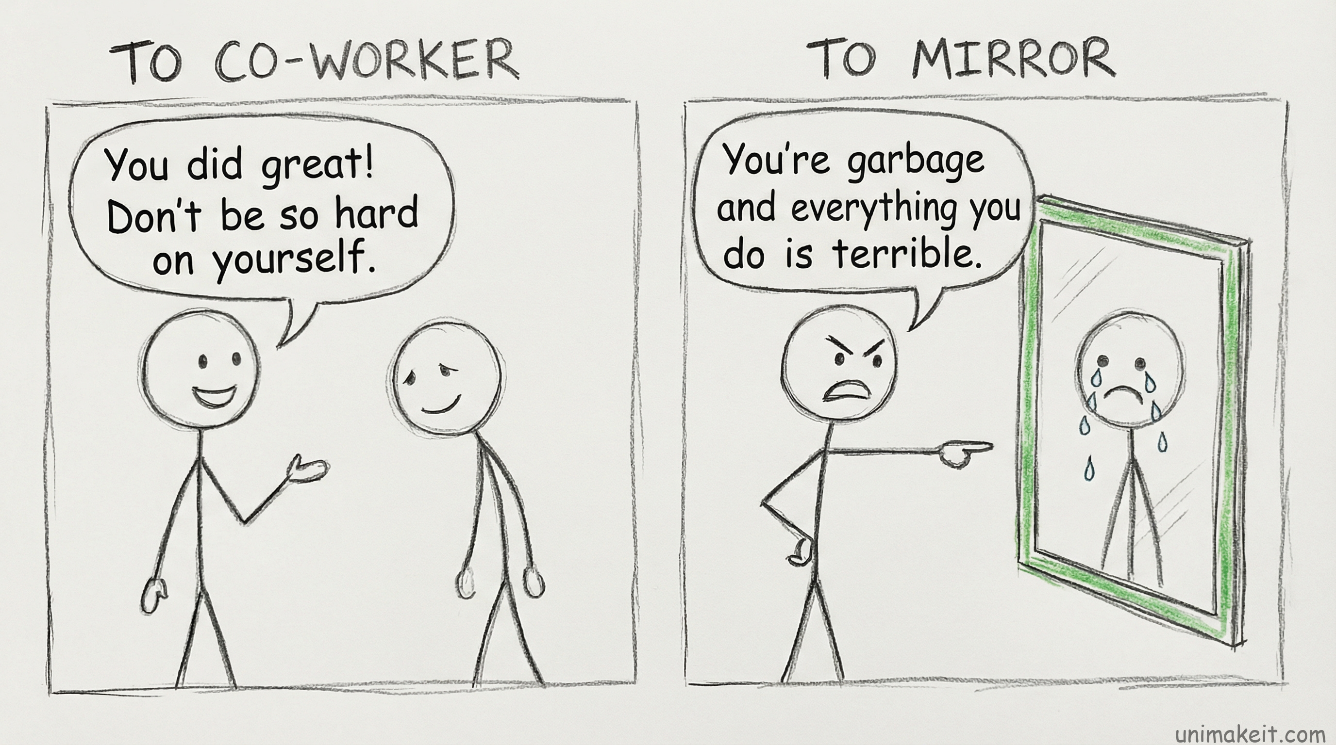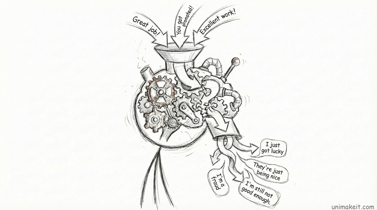 Your manager praises your work. Your brain translates: “They’re just being nice. They don’t really mean it.”