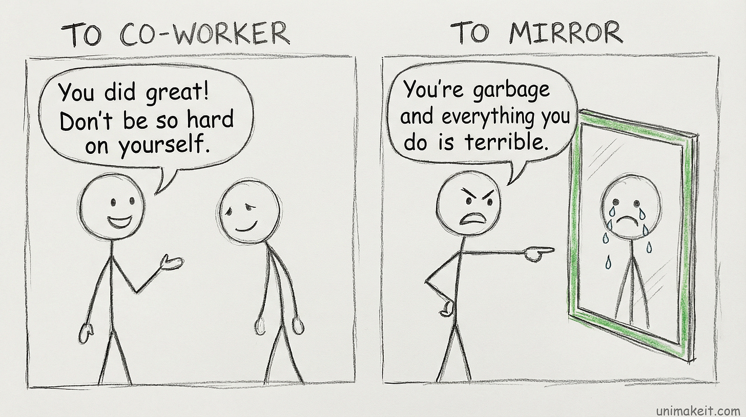 You get promoted. Your brain: “They must be desperate. I’m a fraud.”