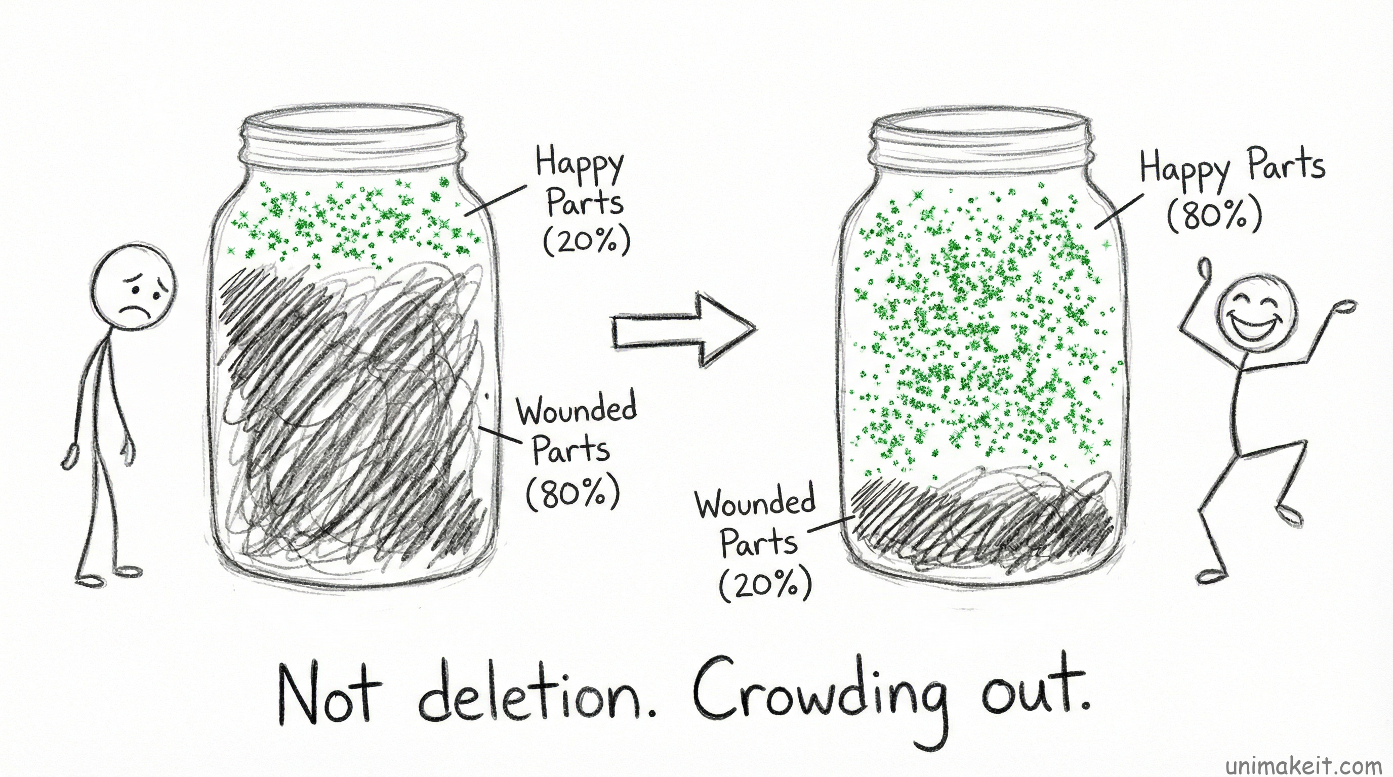 The more you amplify the happy parts, the less room there is for the wounded parts.