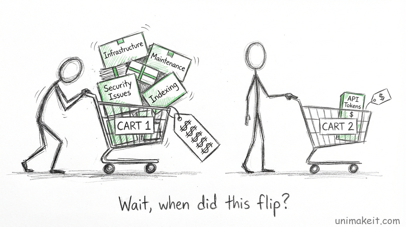 Problem 2: Security. Your index has to live somewhere. A third-party provider? Now you’re uploading your codebase to someone else’s servers. Build it yourself? Now you’re maintaining database infrastructure.
