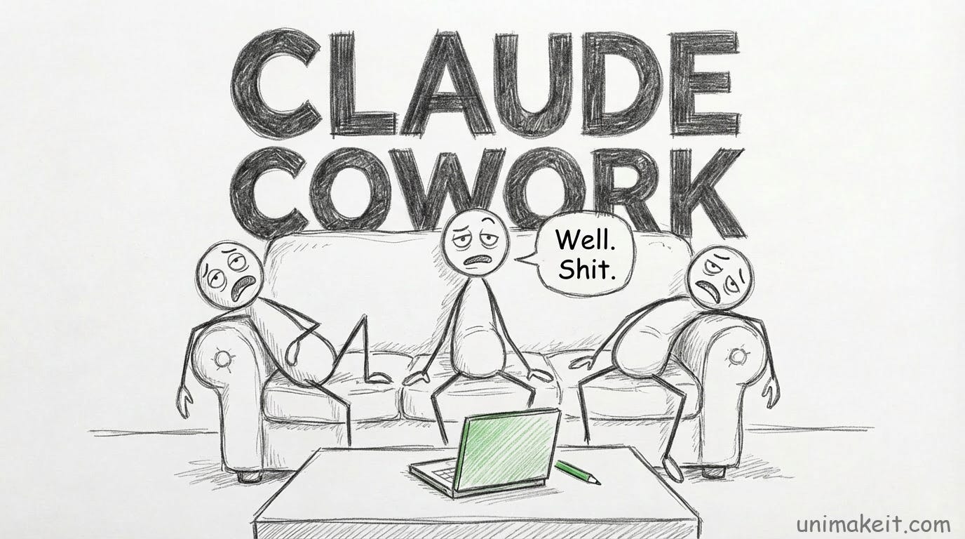 Three co-founders sit in their living room after watching Claude Cowork launch.