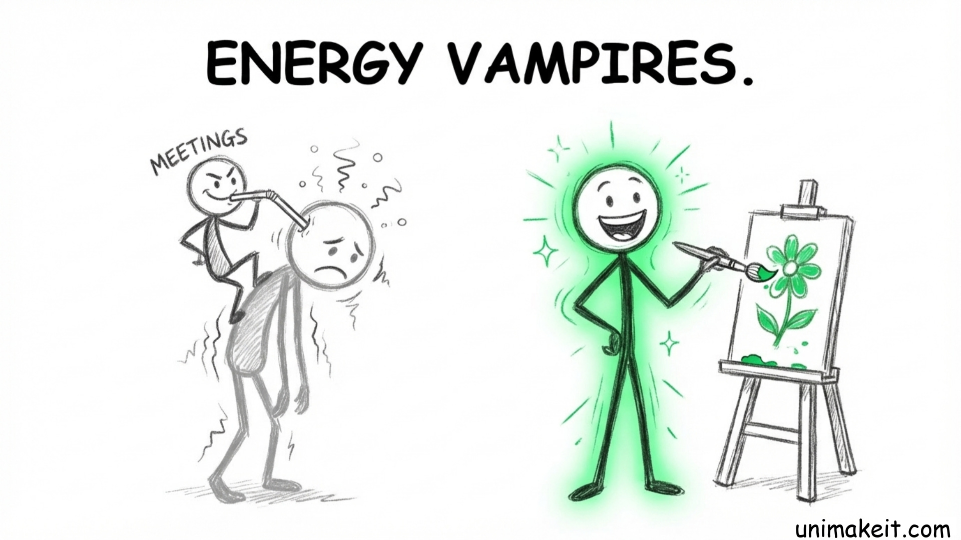 Mental Wealth is about “Energy Vampires.” Some tasks (and people) give you energy. Some suck the life force out of you until you are a husk. Wealth is structuring your “Agency of One” so you spend your days doing things that actually recharge your battery.