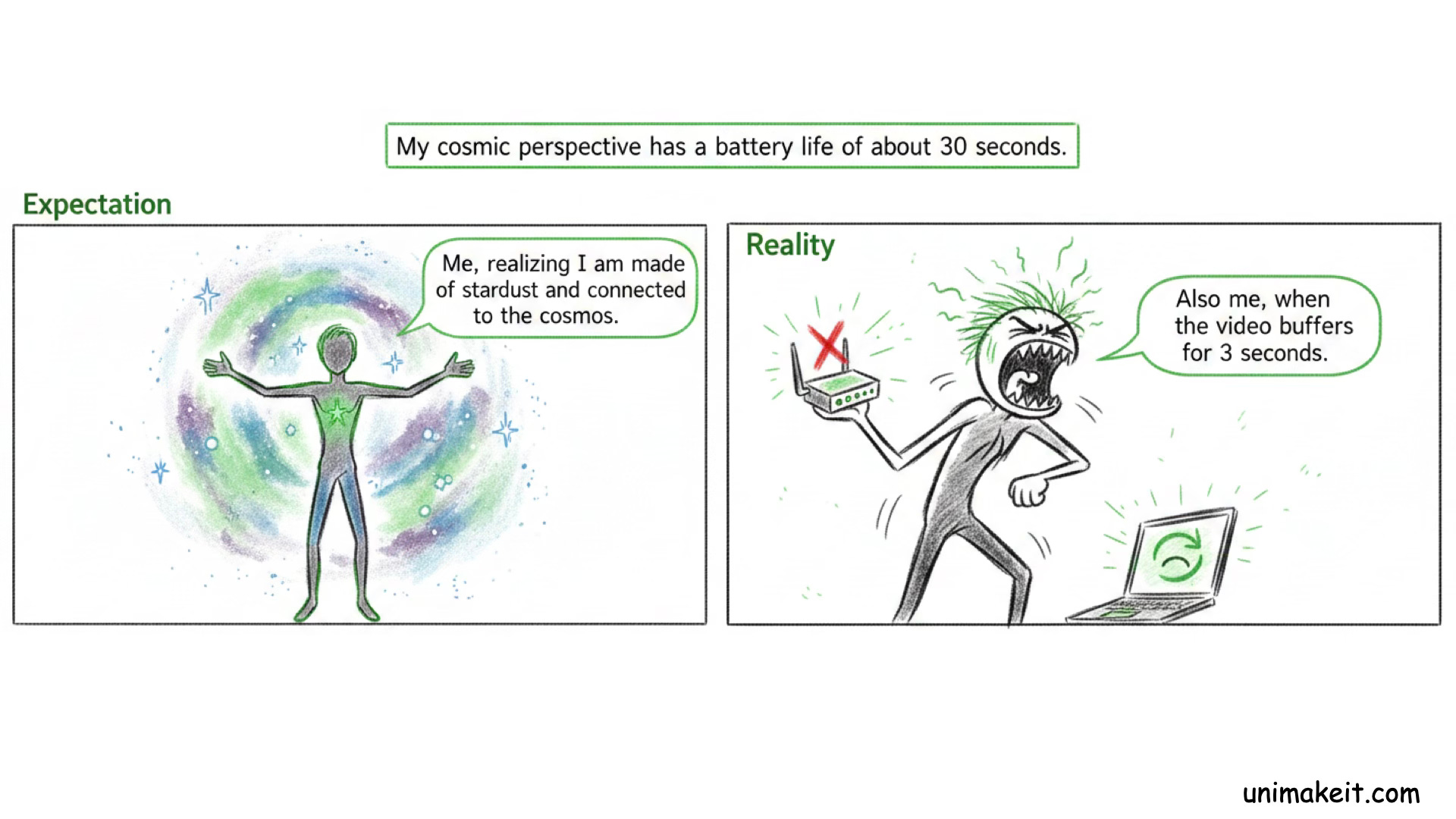 We are insignificant. We are tiny. The universe is 13.8 billion years old, and I am upset because my coffee is lukewarm.