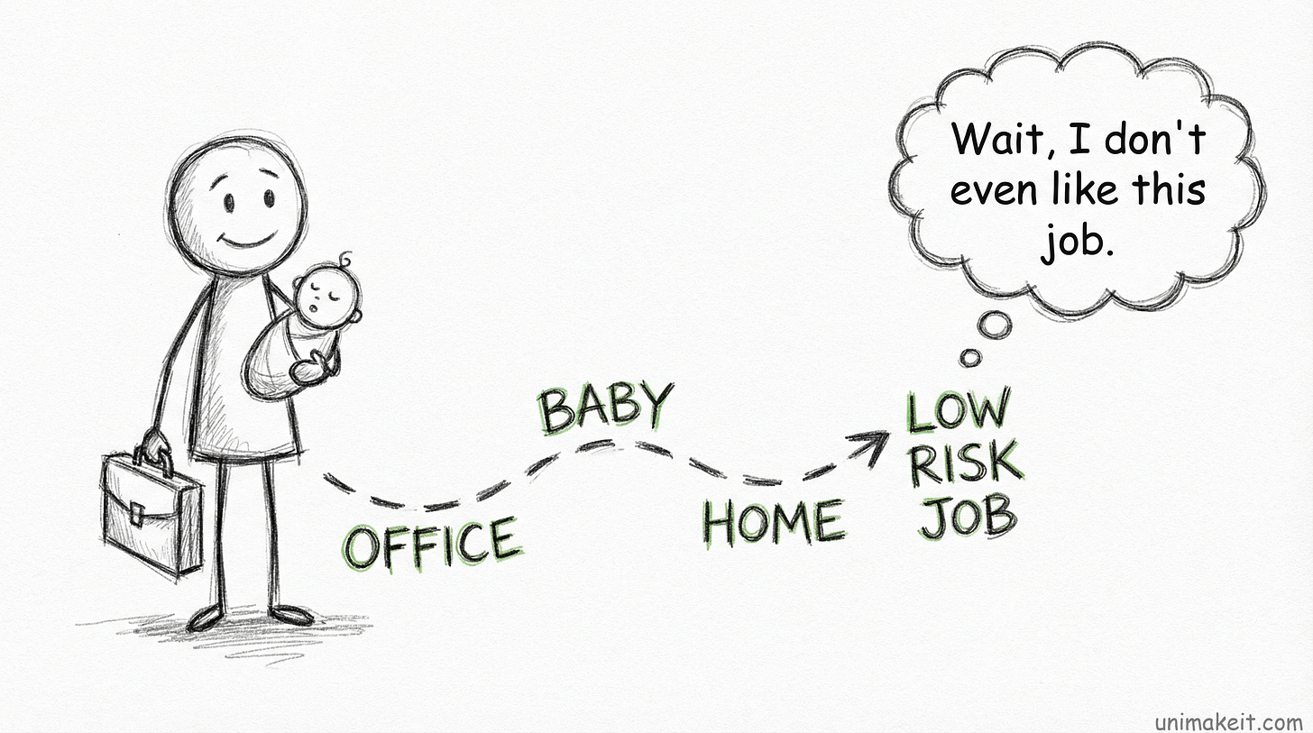 But take time off – for kids, or burnout, or literally anything – and your hour-value drops. Permanently.