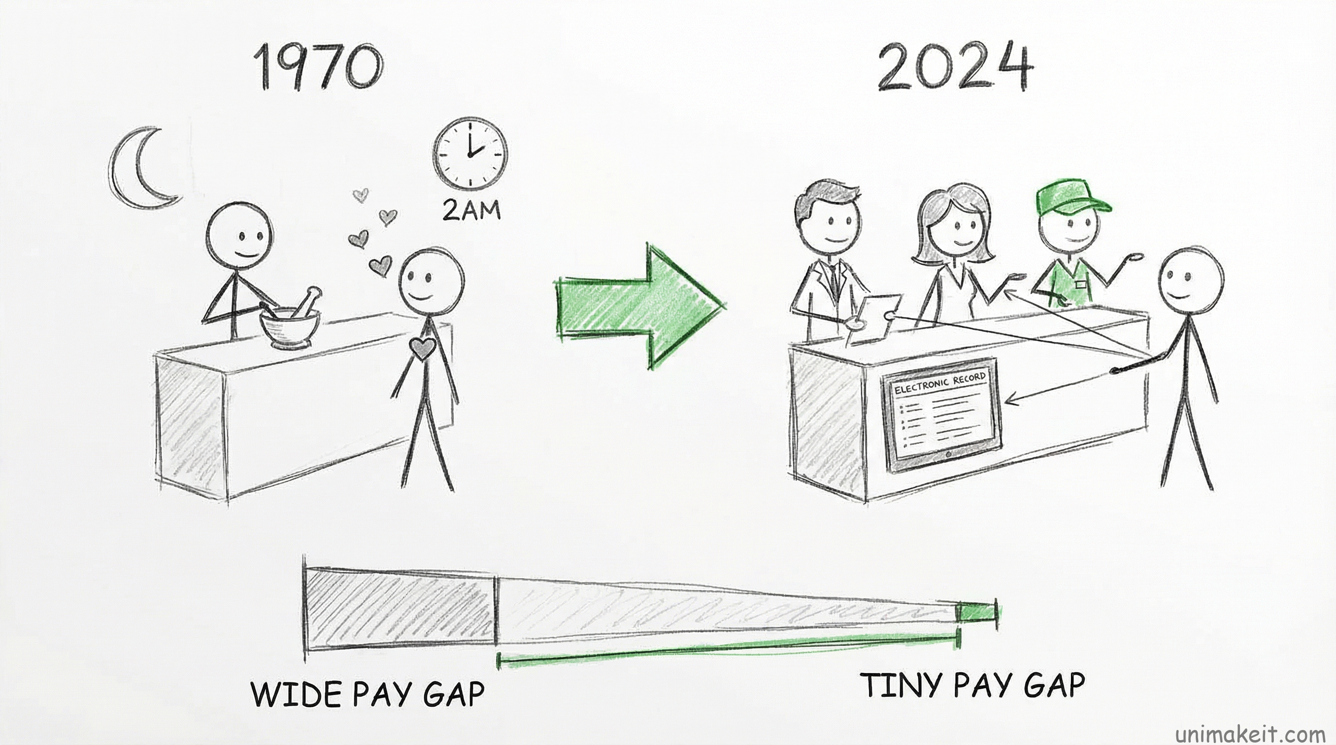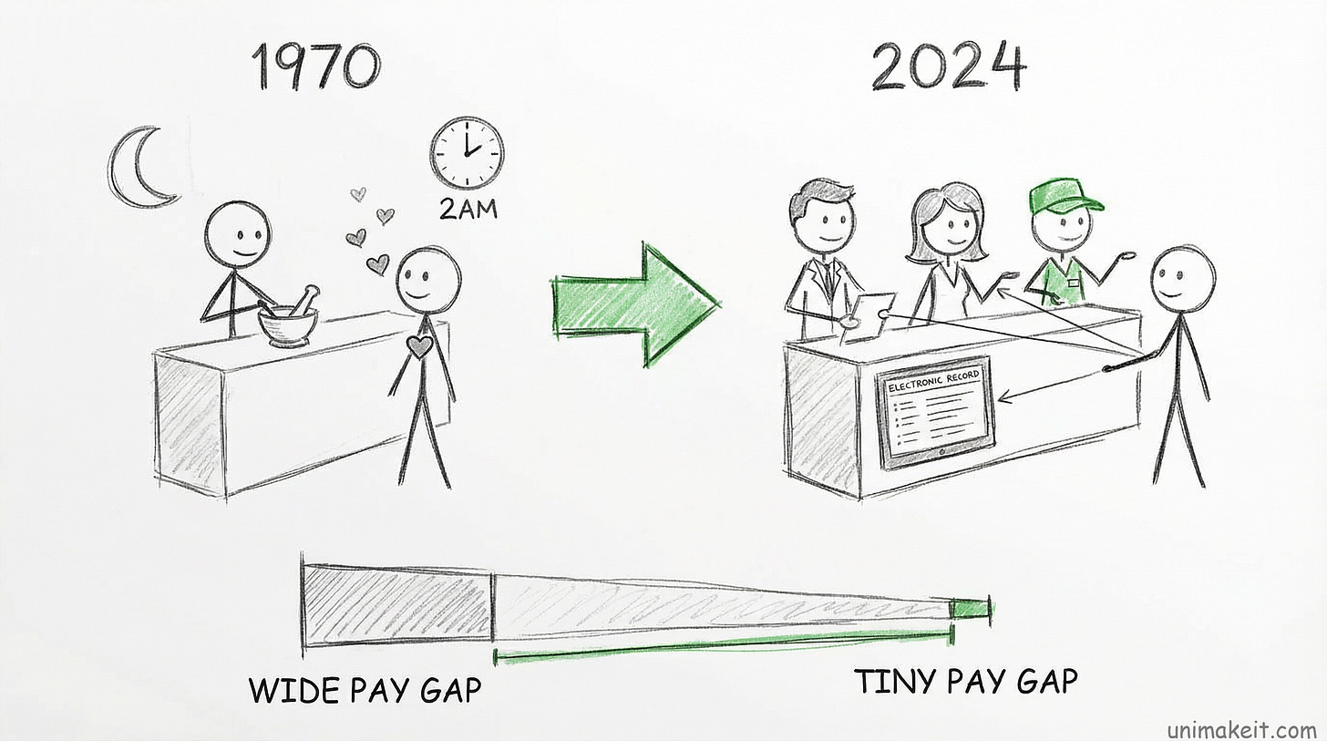 Fifty years ago, pharmacy WAS a greedy job. Pharmacists had “their” customers. Personal relationships mattered. You’d get 2am calls for emergency prescriptions.