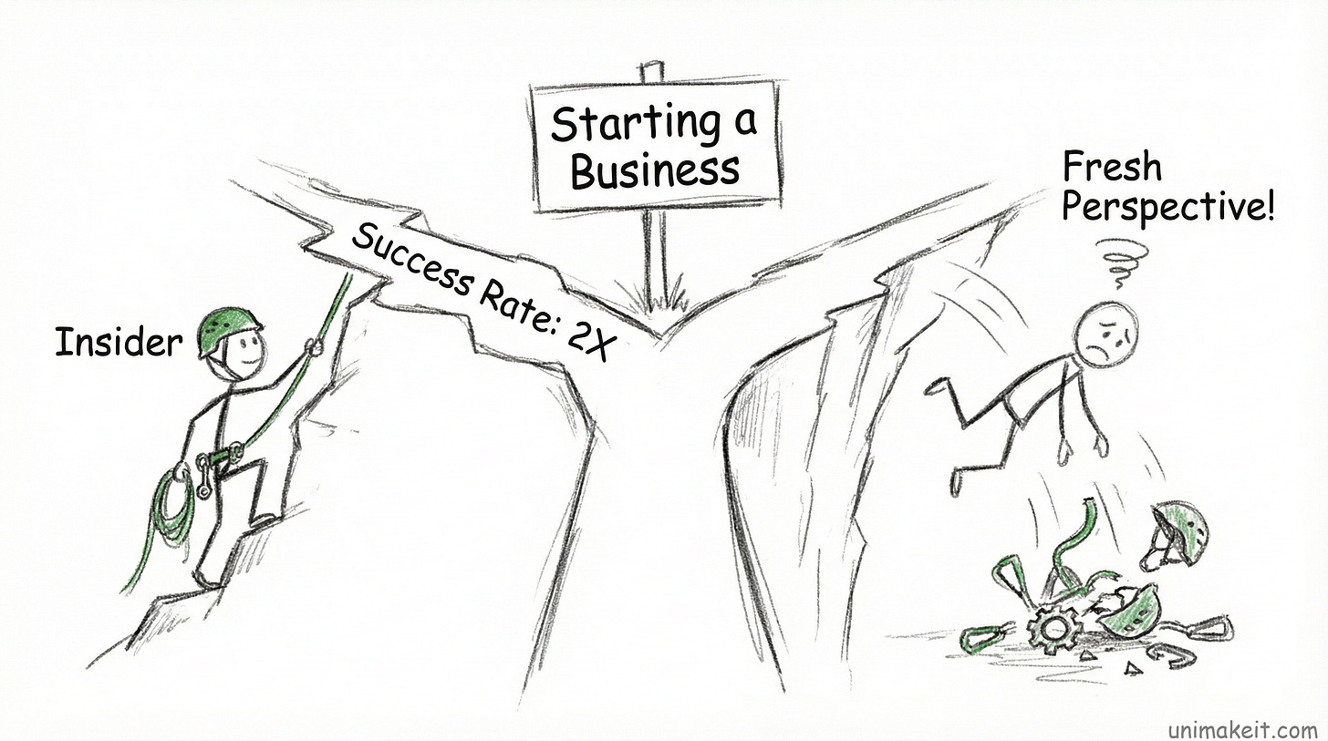 If you have direct experience in an industry, your success rate is about double that of outsiders.