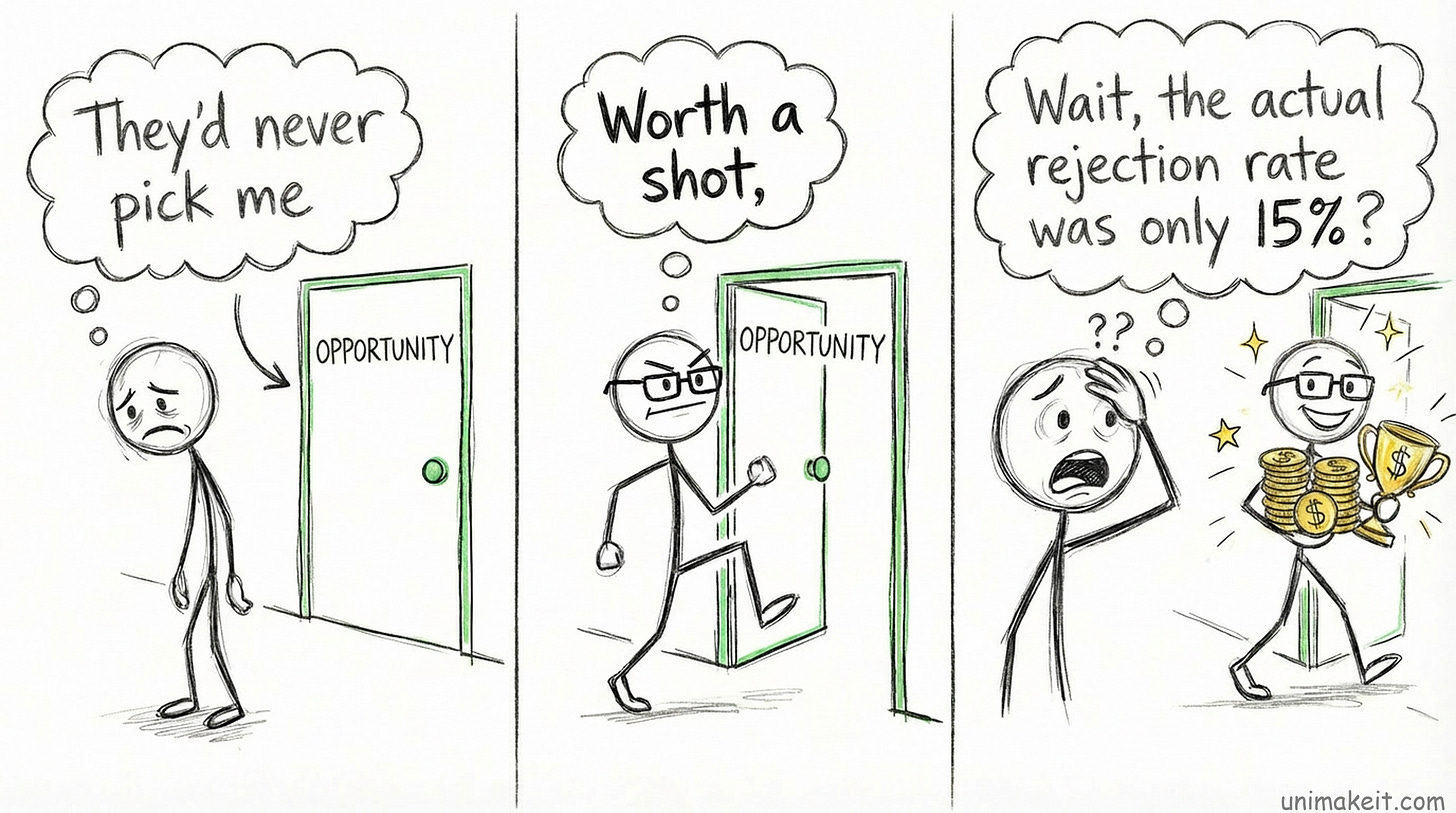 Not applying because “they’d never pick me.” Not speaking up because “someone smarter probably thought of this.” Not sharing your work because “it’s not ready yet.”