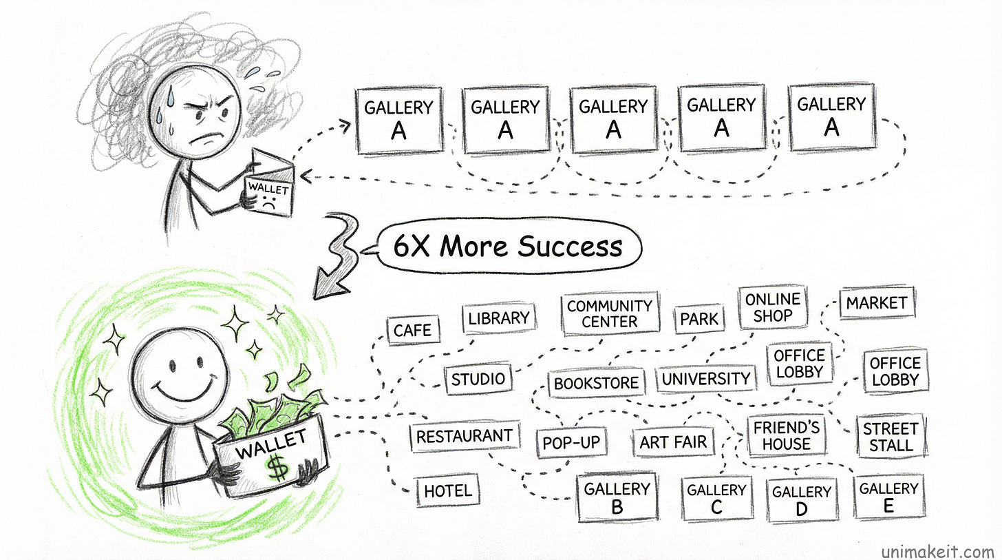 Artists who constantly moved around exhibiting everywhere? 6 times higher success rate.