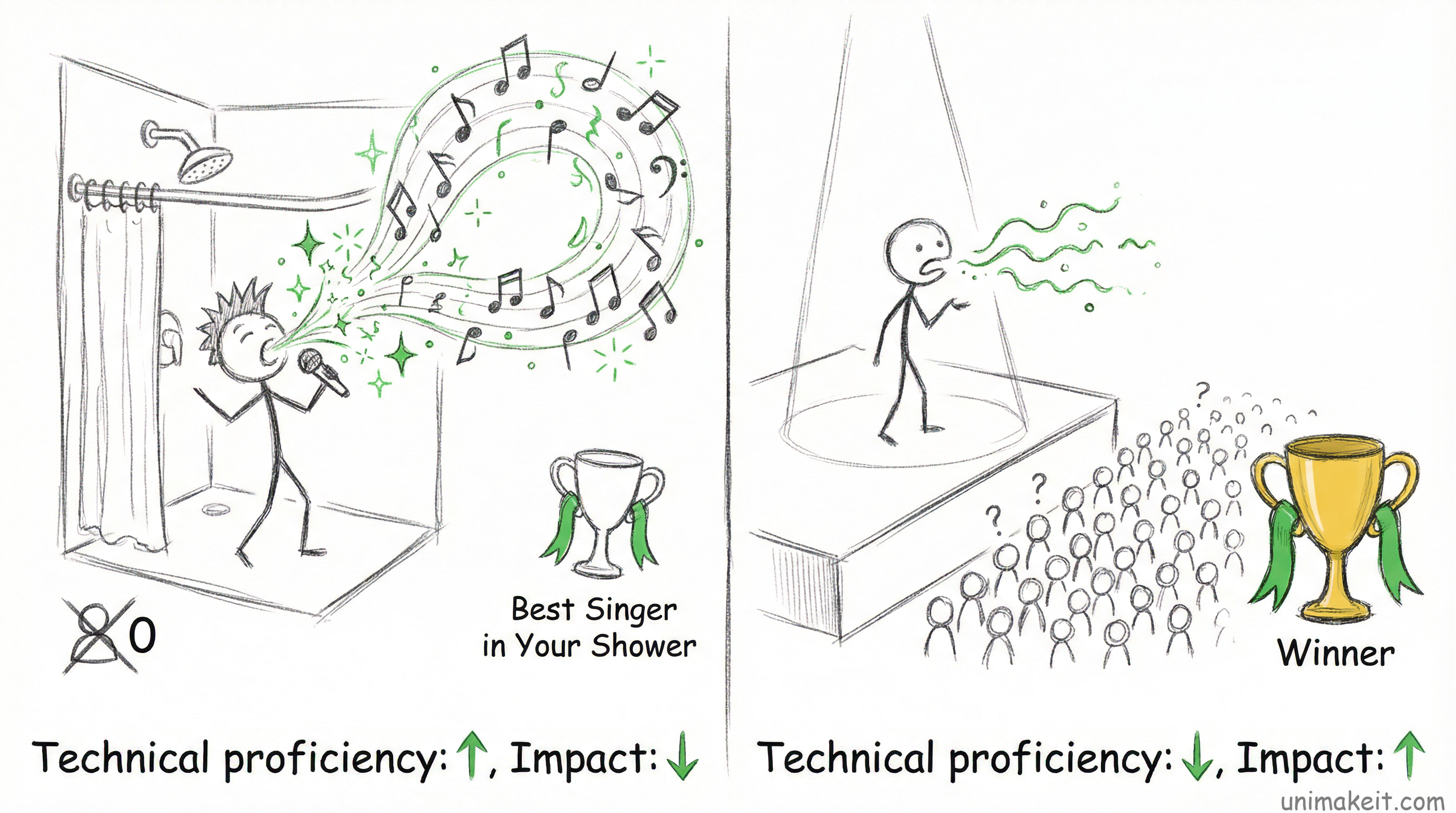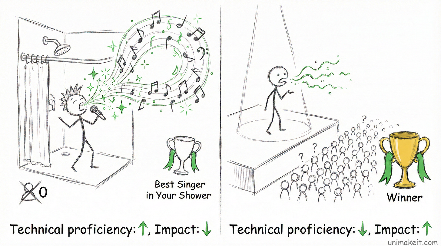 But doing good work in silence is like being the best singer in your shower. Technically proficient, zero impact.